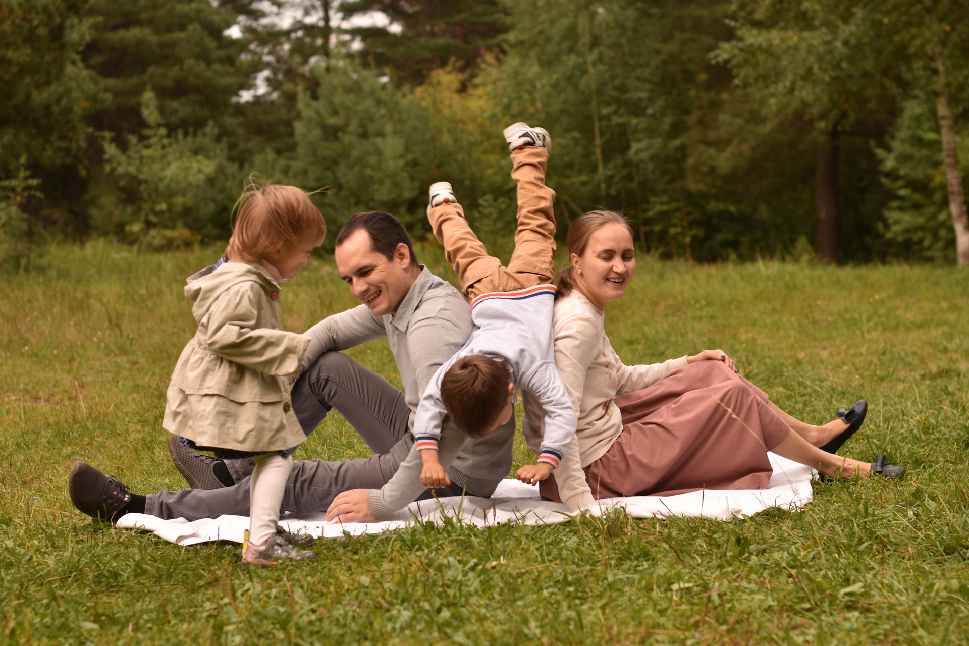 Семейная прогулка может быть веселой.